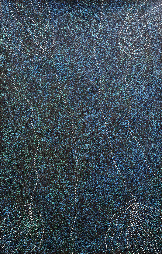 One of her subjects is the bush plum, which she depicts in her Bush Plum Dreaming paintings. The story details bush plum seeds as they are blown across the lands at the time of creation.