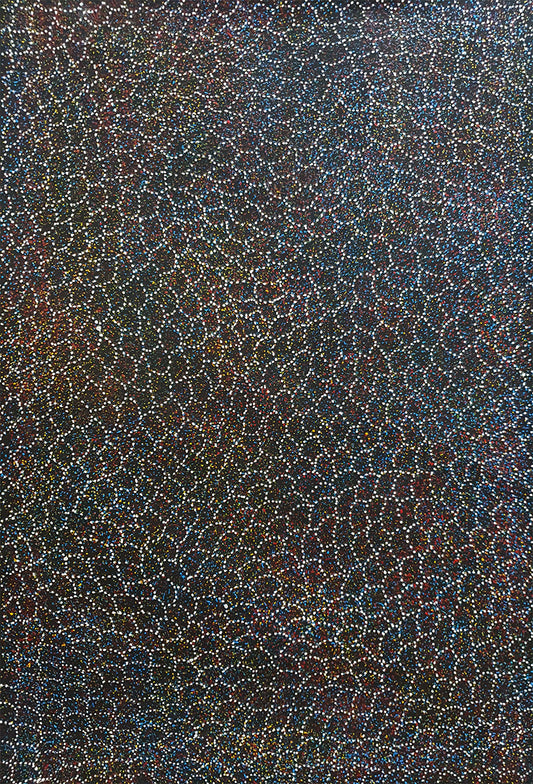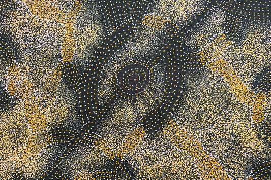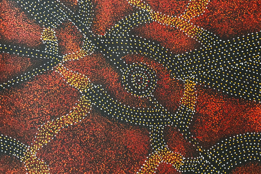 Her mother and auntie began their painting career in the 1980’s at Utopia working initially with batik before transposing her designs onto canvas. Her language group is Alyawarre.
