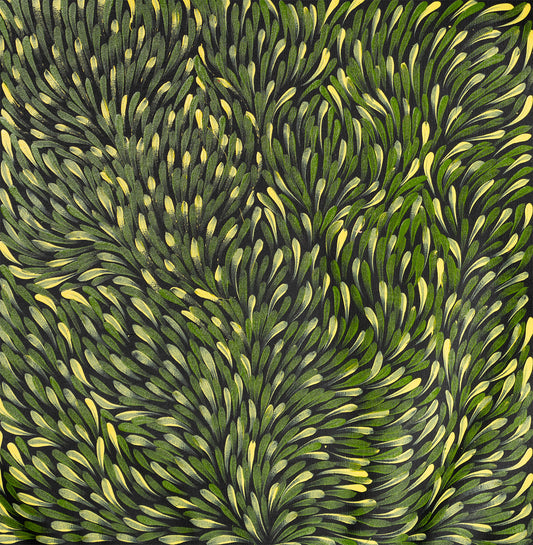 In 1991 she had her first solo exhibition at Utopia Art in Sydney. Since then she has exhibited at the National Gallery in Canberra, Art Gallery of New South Wales, Jinta Desert Art in Sydney and the Powerhouse Museum in Sydney. She is also featured extensively in major collections around the world. The National Gallery of Australia, the Robert Holmes a’ Court Collection, Museum of Victoria and the Powerhouse Museum. Gloria Petyarre is a multi-award winning artist and a highly collectible one. Her involvement in the founding projects of the Utopian Art Movement, and her status in the group have given her a place in Australian Art History – as well as a significant body of work. Apart from winning the AGNSW Wynne Prize in 1999, Gloria went on to be a finalist another four times. The most prestigious Indigenous art competition in this country, the ‘Telstra National Aboriginal and Torres Strait Islander Art Award’ has featured her artworks on many occasions, and her works are widely collected and commonly held in the finest Aboriginal Art Collections and Museums worldwide.