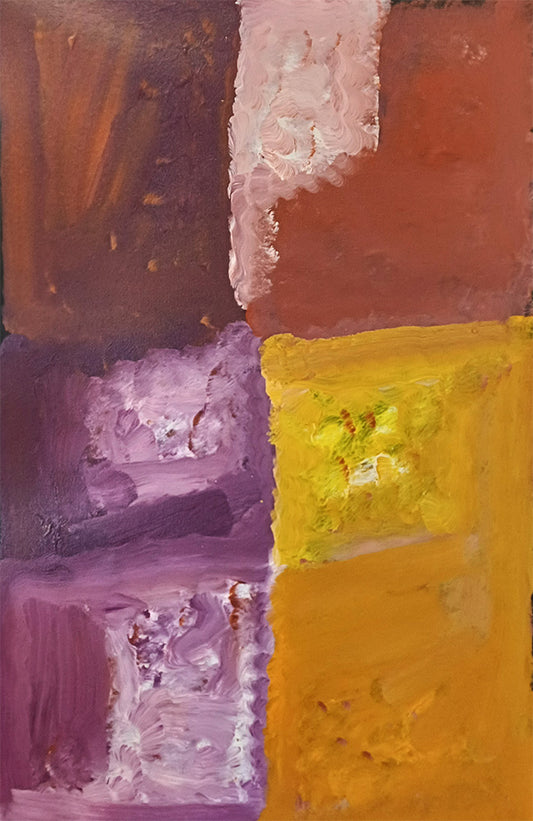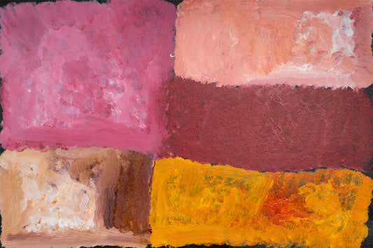 Now Kudditji’s Dreamings have profoundly evolved into extraordinary juxtaposed colour fields, startling in both composition and hue. Harsh or soft and often surprising to the Western eye, his painterly style maps out the creation, his country, and his traditional Dreamings. While his spatial, painterly compositions have a Rothko-esque quality to them, the work of this Anmatyerre elder from the Northern Territory is clearly a unique Australian voice. His highly intuitive and gestural method of painting together with his vibrant, colour saturated spaces is ground breaking in Aboriginal art, and although he is already well collected it is felt by many industry insiders that his work is poised for a major market leap.